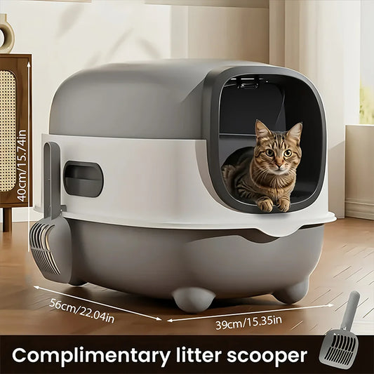 Dual Purpose Litter Box, With Splash Proof, Odor Isolation & Litter Scoop For Cats Up to 33.07Lbs